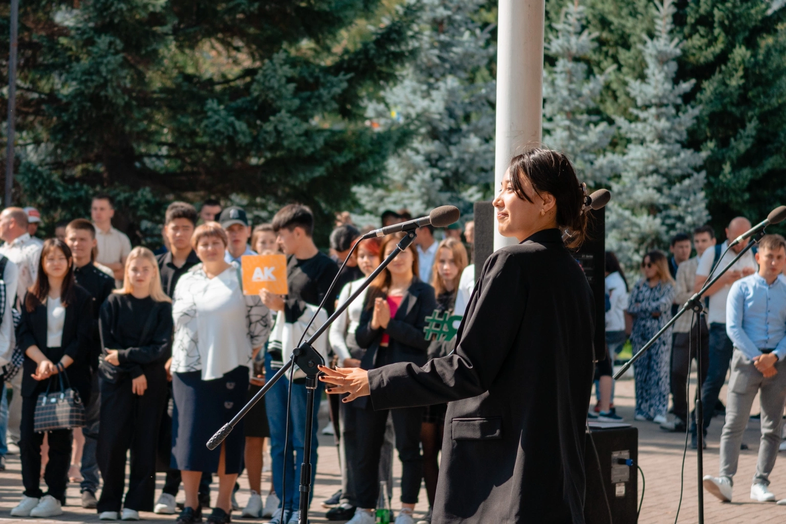 После для участников линейки выступила солистка вокальной студии «Консонанс» Наталья Пак с песней «Моя страна».