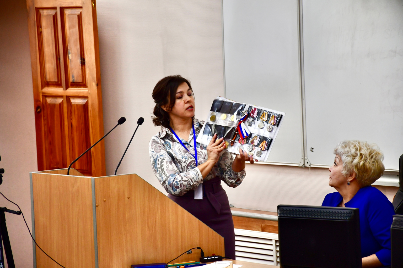 Завершил пленарное заседание научный доклад начальника отдела по делам архивов Министерства юстиции Республики Алтай Марины Алексеевны Яковлевой. Она рассказала об участии наших земляков – жителей Горного Алтая в Великой Отечественной войне, Афганском конфликте и СВО. Доклад сопровождался богатым иллюстративным материалом: фронтовыми фотографиями и письмами участников войн, а также стихами военных лет.